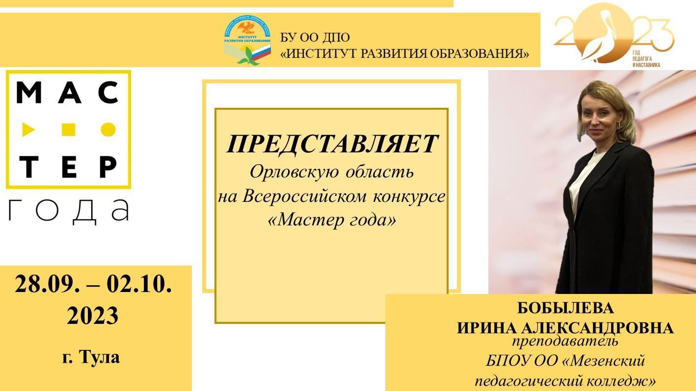 Каждый участник конкурса «Мастер Года-2023 года» – супергерой. А всем известно, что супергерой имеет свои особенности и таланты. Каждый проявил свой талант, каждый раскрылся в профессиональном плане. На конкурсе «Мастер Года» соединились лучшие преподаватели и мастера своего дела. Мы безумно счастливы, что нашей участнице – Бобылевой Ирине Александровне, преподавателю Мезенского педагогического колледжа, удалось познакомить конкурсантов со своими методиками обучения, обменяться опытом с коллегами.