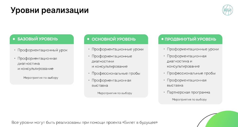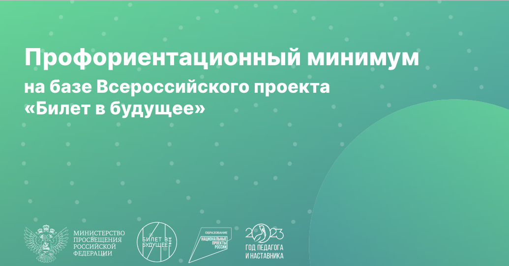 В России в рамках национального проекта «Образование» Фондом гуманитарных проектов реализуется масштабная программа ранней профориентации для школьников «Билет в будущее». Ее материалы легли в основу профминимума, который начнут внедрять в школах с 1 сентября 2023 года.