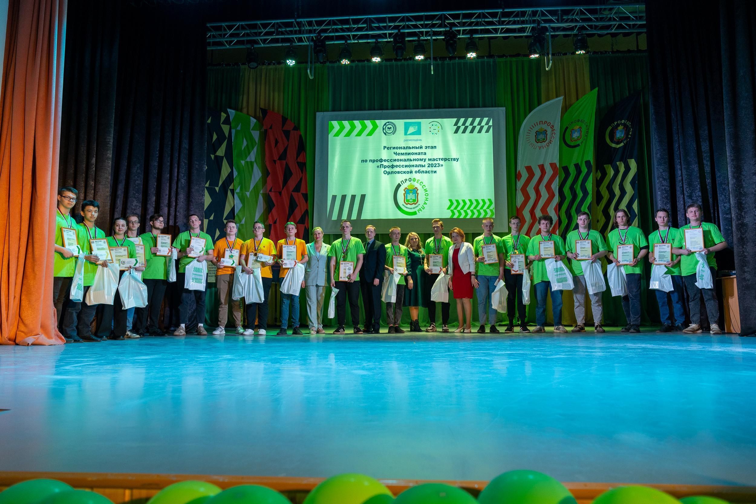 В Орловской области определены победители регионального этапа Всероссийского чемпионатного движения по профессиональному мастерству. Чемпионат проходил с 27 марта по 7 апреля 2023 года на базе 11 профессиональных образовательных организаций Орловской области, БУ ОО ДО «Дворец пионеров и школьников имени Ю. А. Гагарина», ФГБОУ ВО «Орловский государственный университет имени И. С. Тургенева» и филиала ФГБОУ ВО «Петербургский государственный университет путей сообщения Императора Александра I».
