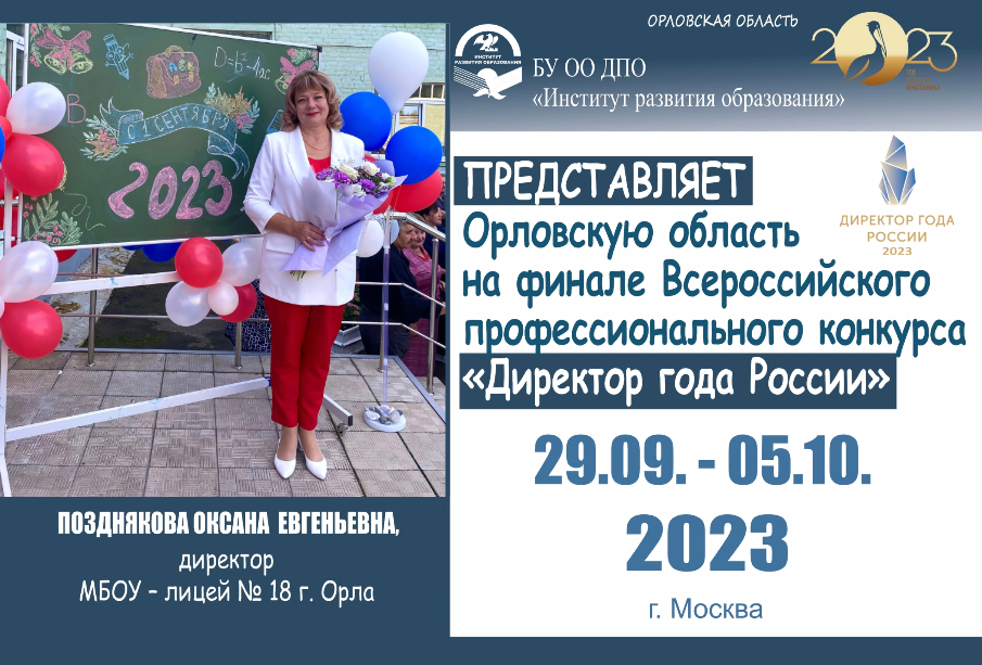 Орловскую область на конкурсе представляет Позднякова Оксана Евгеньевна, директор лицея №18.