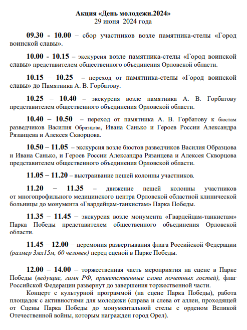 29 июня в Парке Победы пройдет Акция «День молодежи.2024»