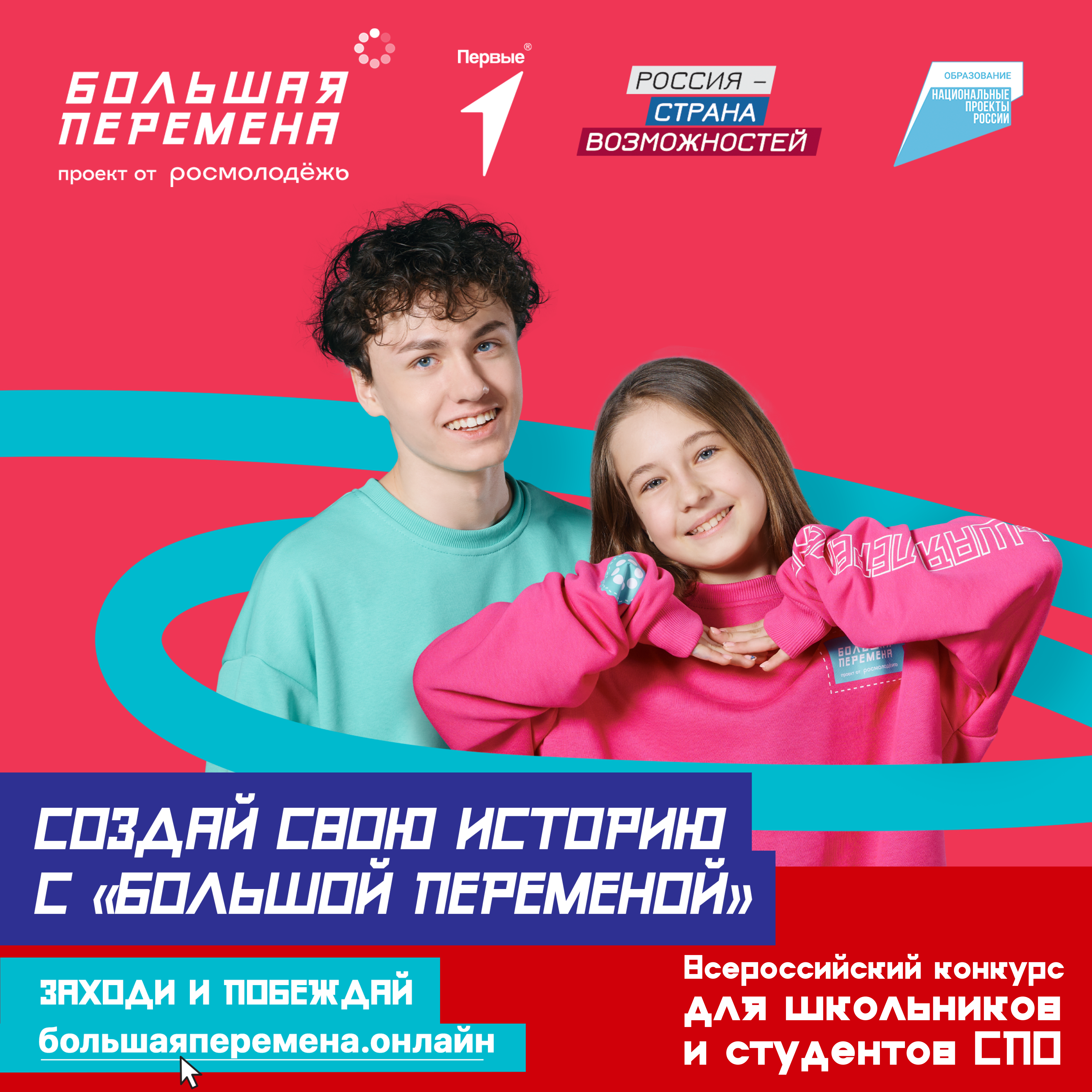 Регистрация участников Всероссийского конкурса «Большая перемена» открыта на платформе до 15 мая 2023 года.