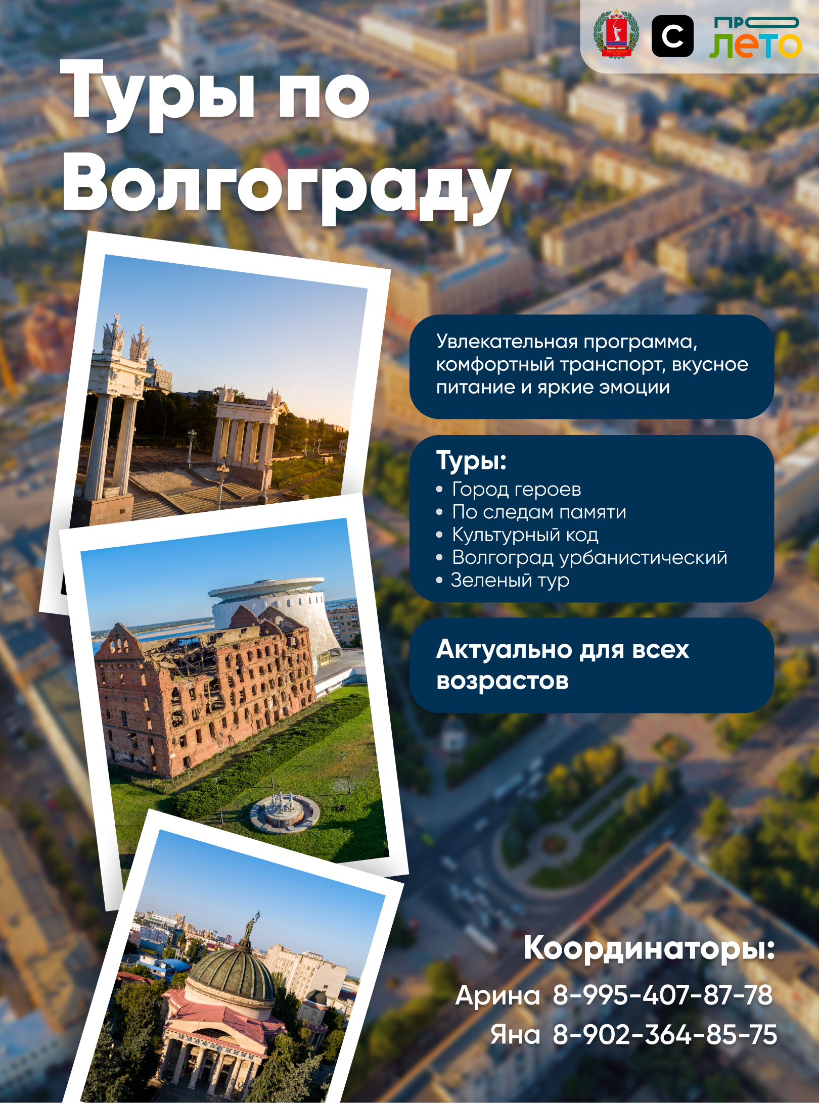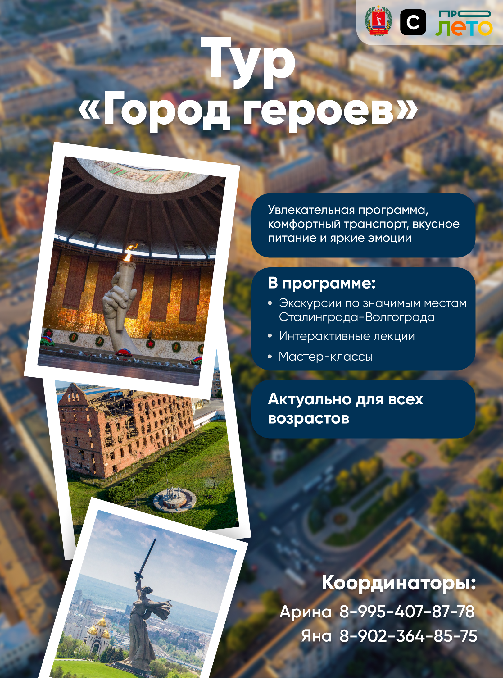 Ведущий туроператор Волгоградской области ООО «Пролето» и АНО «Институт развития городской среды и креативных индустрий «СРЕДА» приглашают вас к участию в экскурсионных турах по городу-герою Волгограду и Волгоградской области.