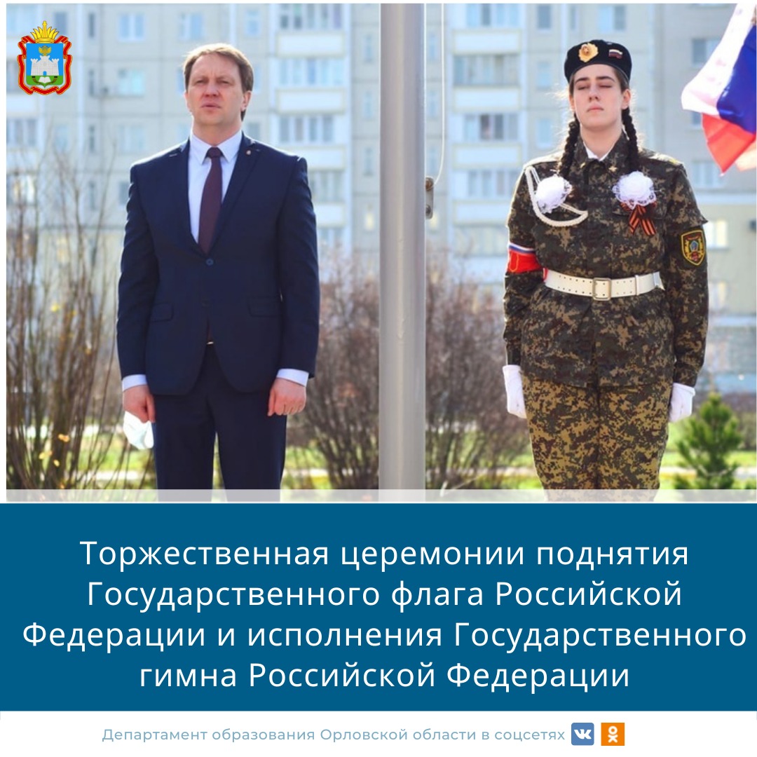 25 апреля 2022 года Орловская область поддержала инициативу педагогов, родителей и учеников и начала учебную неделю с торжественной церемонии поднятия Государственного флага Российской Федерации и исполнения Государственного гимна Российской Федерации.