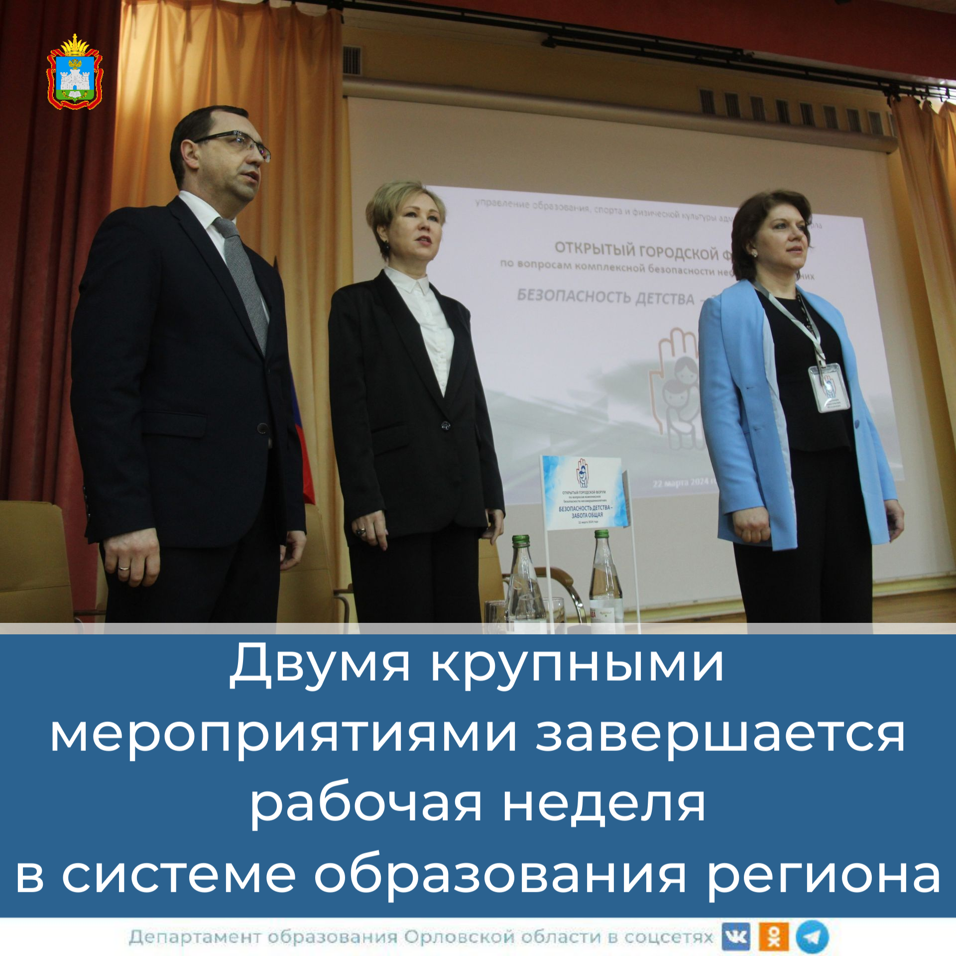 горячего питания в общеобразовательных организациях, организованное Департаментом образования Орловской области, и открытым городским форумом «Безопасность детства – забота общая», организованным управлением образования спорта и физической культуры и администрации города Орла.