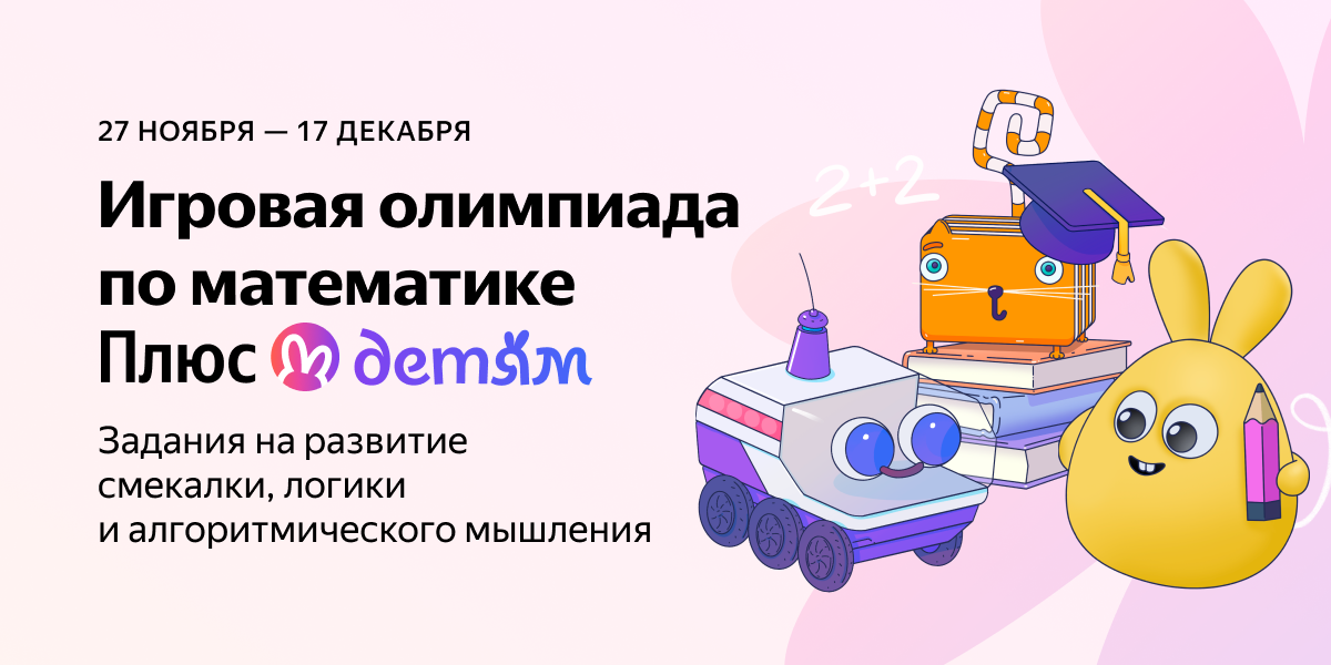 С 27 ноября по 17 декабря пройдёт бесплатная игровая олимпиада по математике Плюс Детям от Яндекса. Это интеллектуальное соревнование для дошкольников и учеников начальных классов, подготовленное методистами Яндекс Учебника и развивающего приложения «Кубокот».
